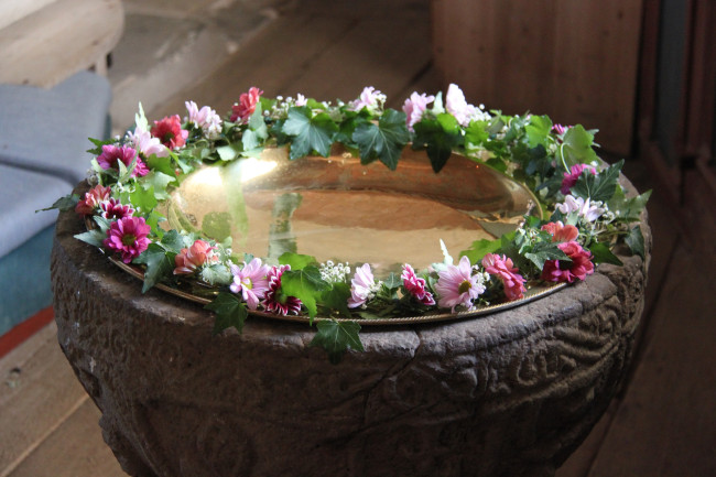Der Altar in der Kreuzkirche ist in der Regel mit Blumen geschmückt. Sie können selbstverständlich auch für einen Blumenschmuck nach Ihrem Geschmack sorgen. Der Taufstein in der Kreuzkirche eignet sich auch zum Schmücken mit einem Kranz oder mit Blumenköpfen. Wenn Kinder im Gottesdienst teilnehmen, können sie während des Gottesdienstes den Taufstein schmücken.